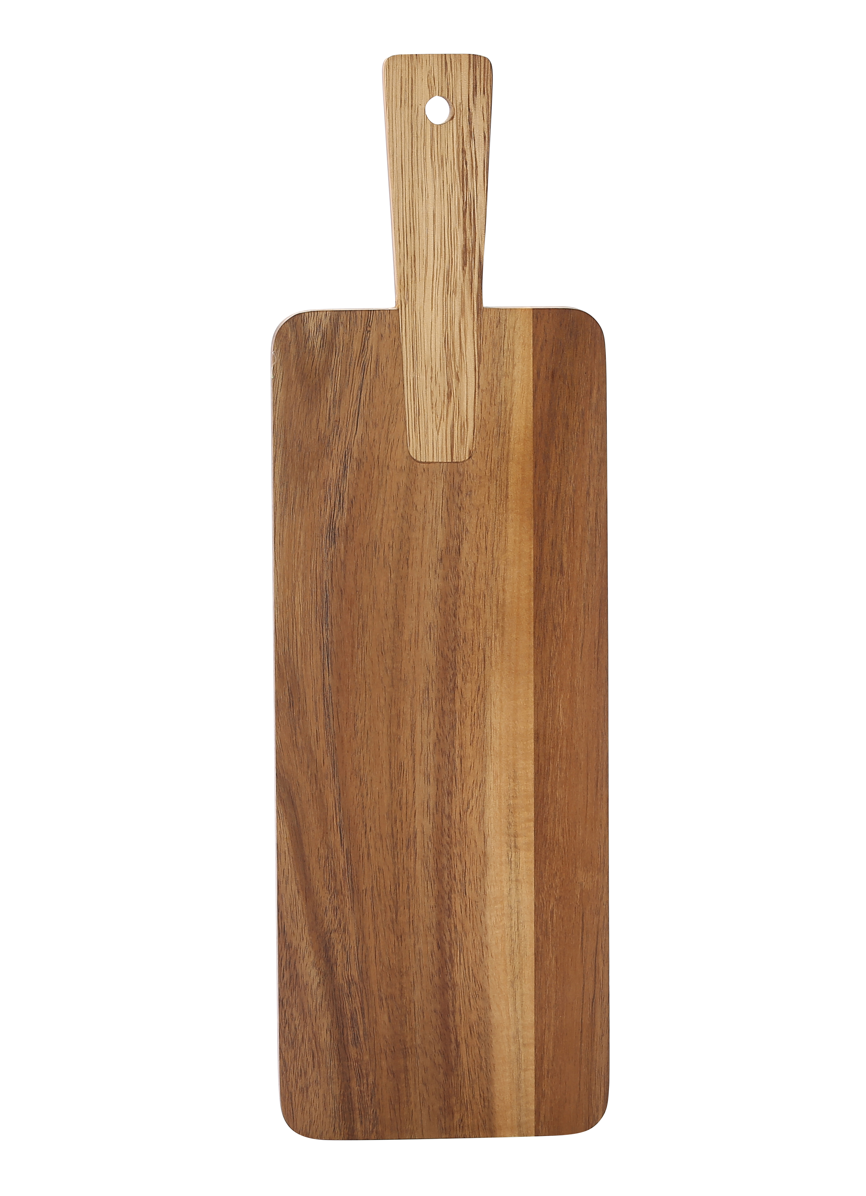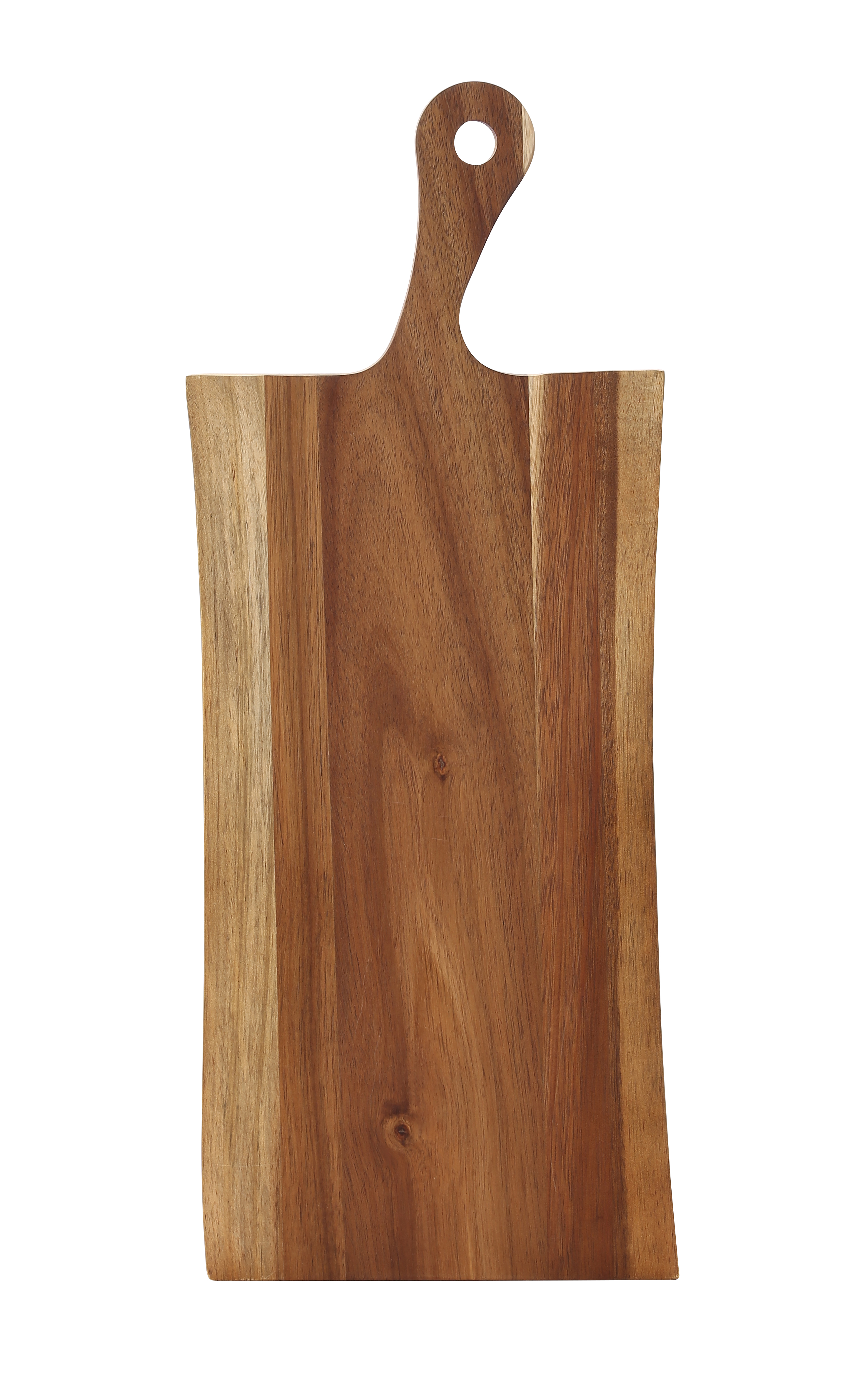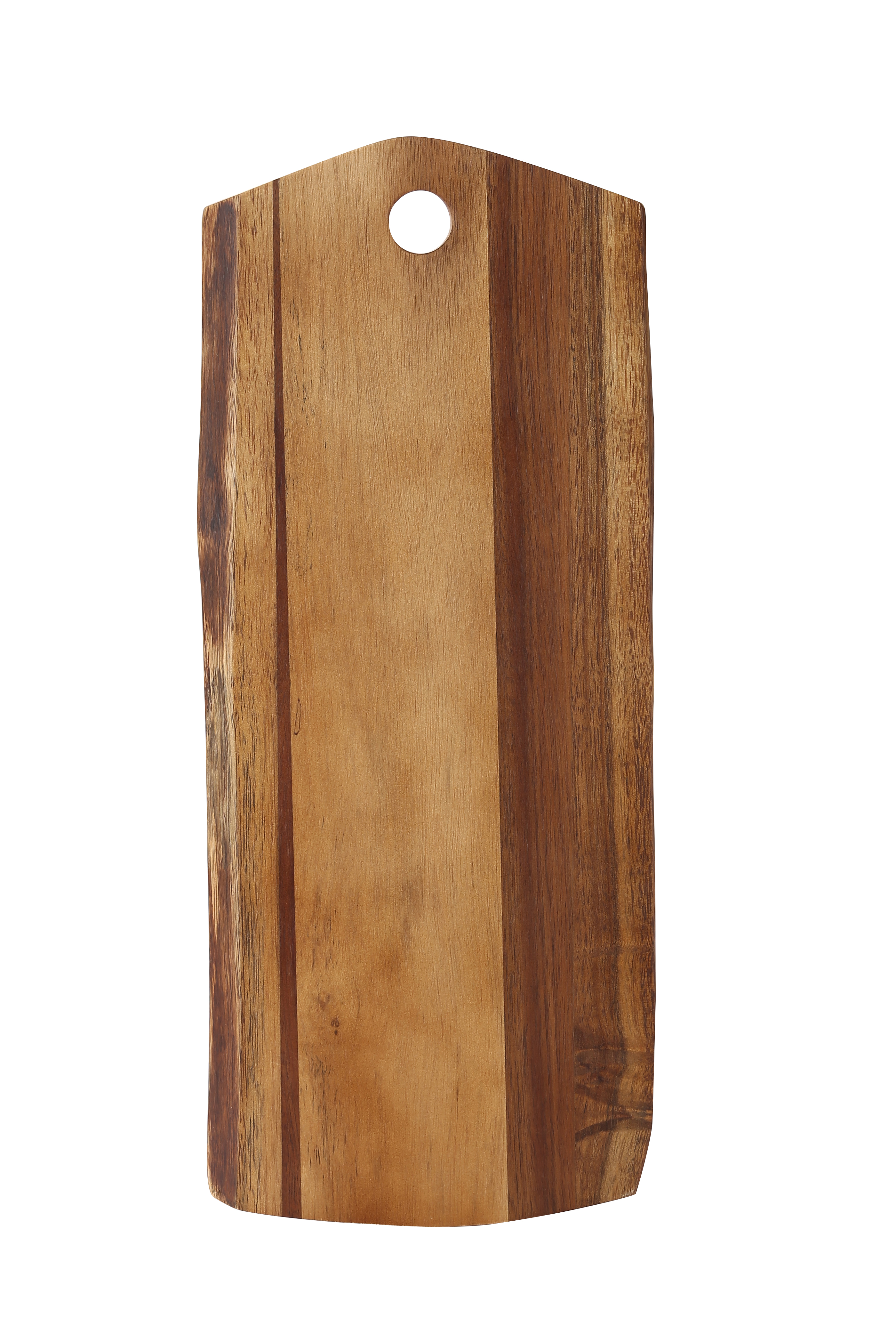 • LOVES TO CUT - In durable acacia wood, this hanging cutting board serves as an all purpose serving tray for bread, cheese, charcuterie, and more