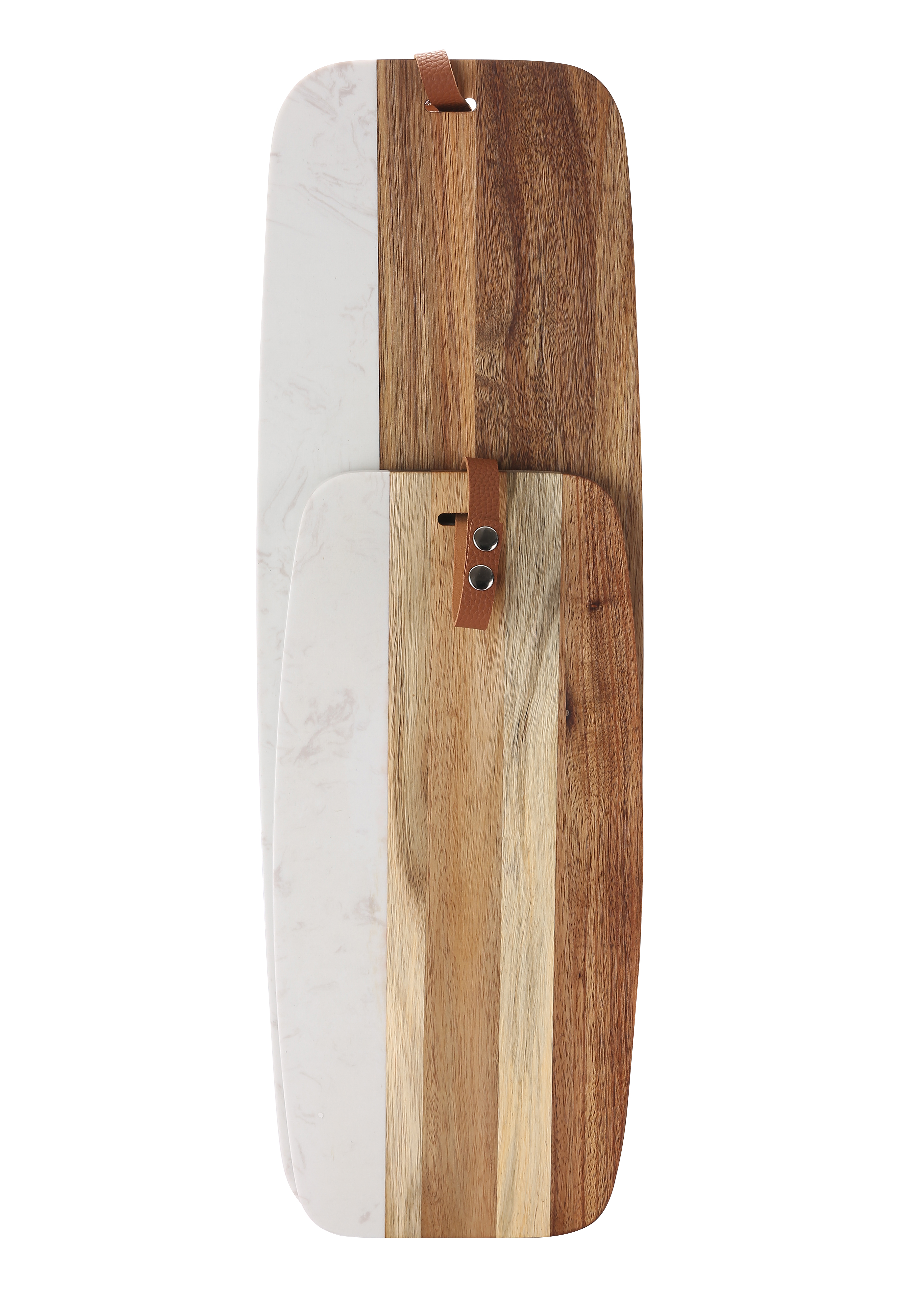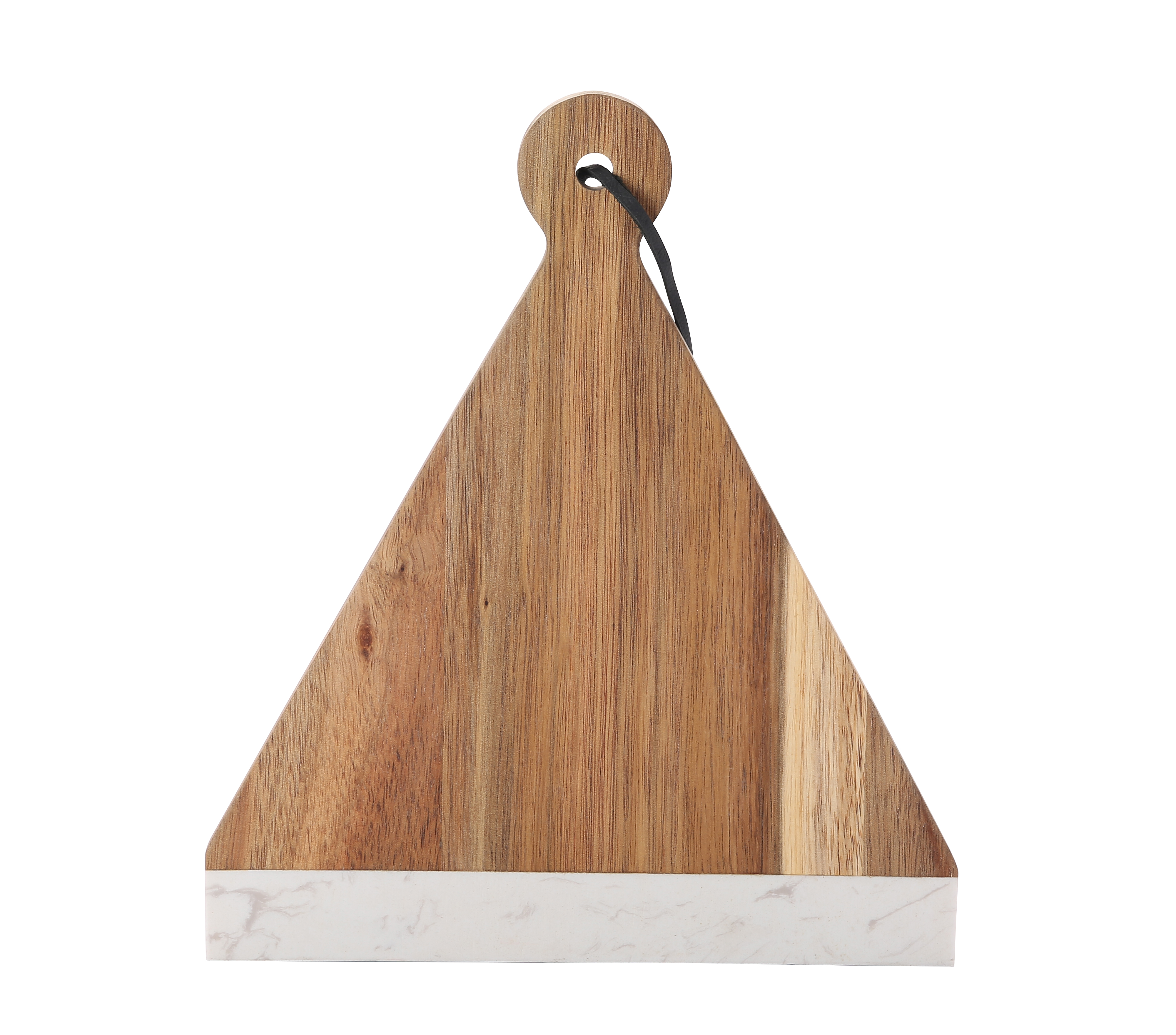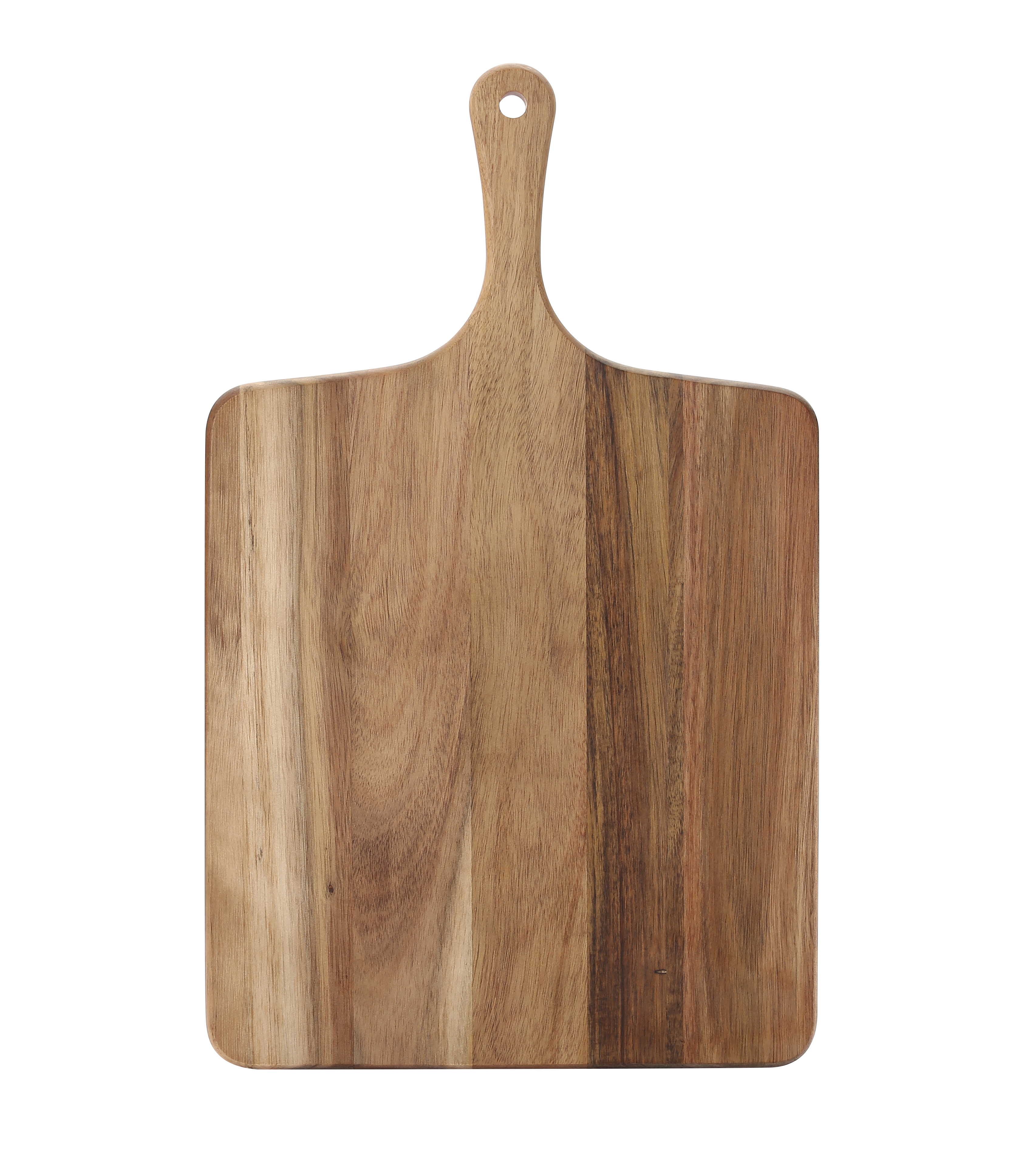 • LOVES TO CUT - In durable acacia wood, this hanging cutting board serves as an all purpose serving tray for bread, cheese, charcuterie, and more