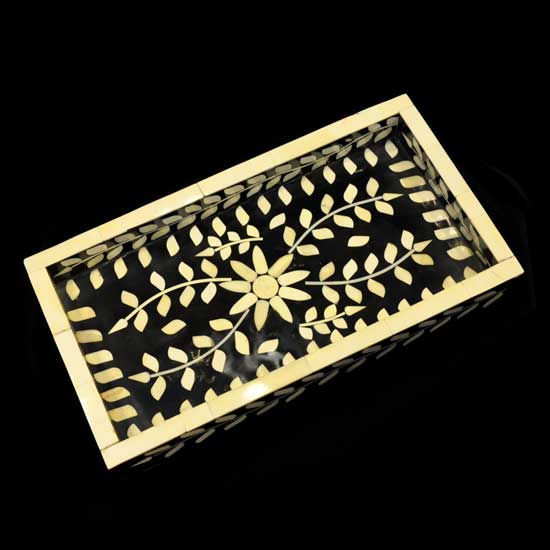 The serving tray is designed with delicate flower and leaf patterns for a sophisticated touch. The robust construction guarantees lasting durability. Enhance your home decor with this chic and beautiful tray.