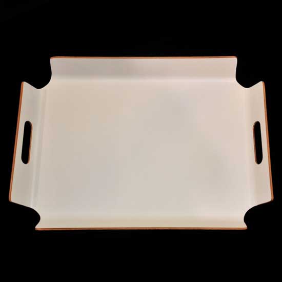 Pictured here is a serving tray with a fashionable design. The willow wood construction offers enhanced durability. This serving tray is designed with two handles for convenient carrying and storage.
