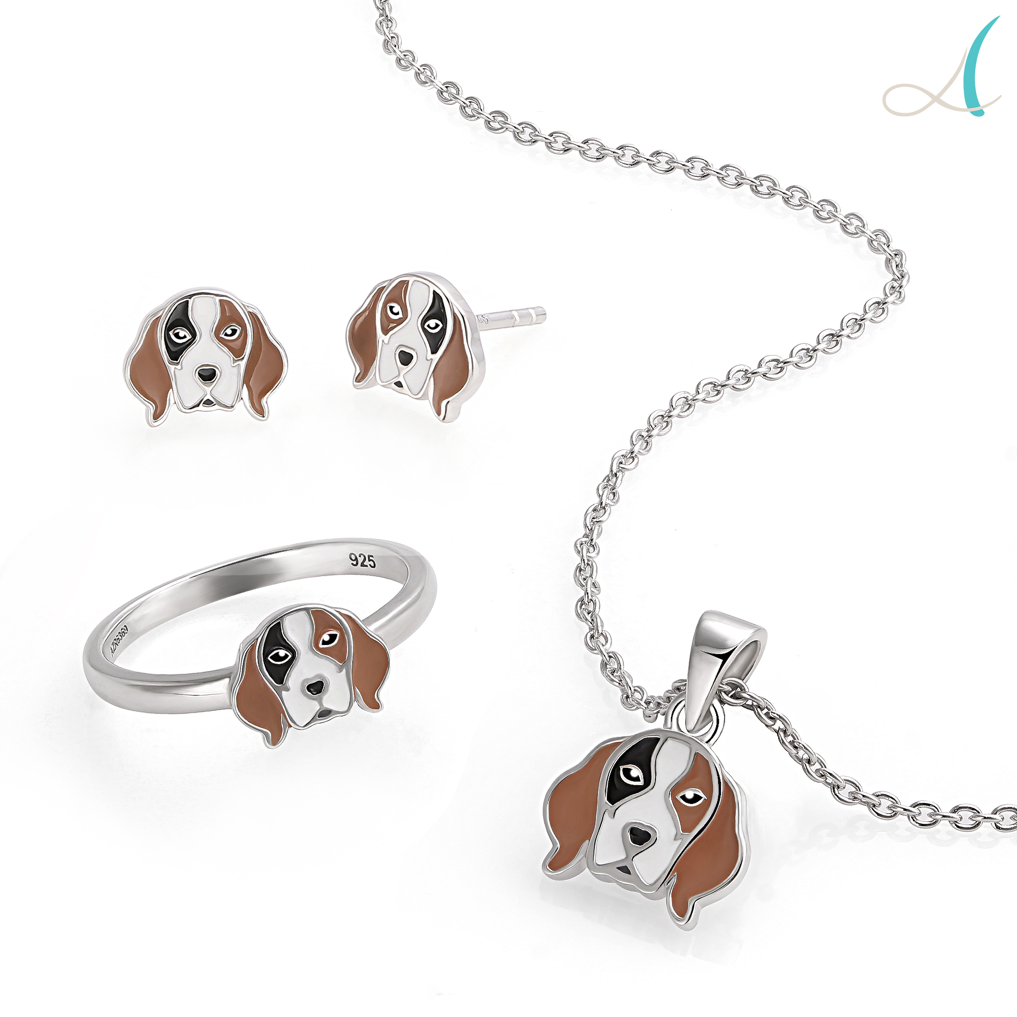 Sterling Silver Jewelry Set for Kids with Italian Enamel & Rhodium Plating