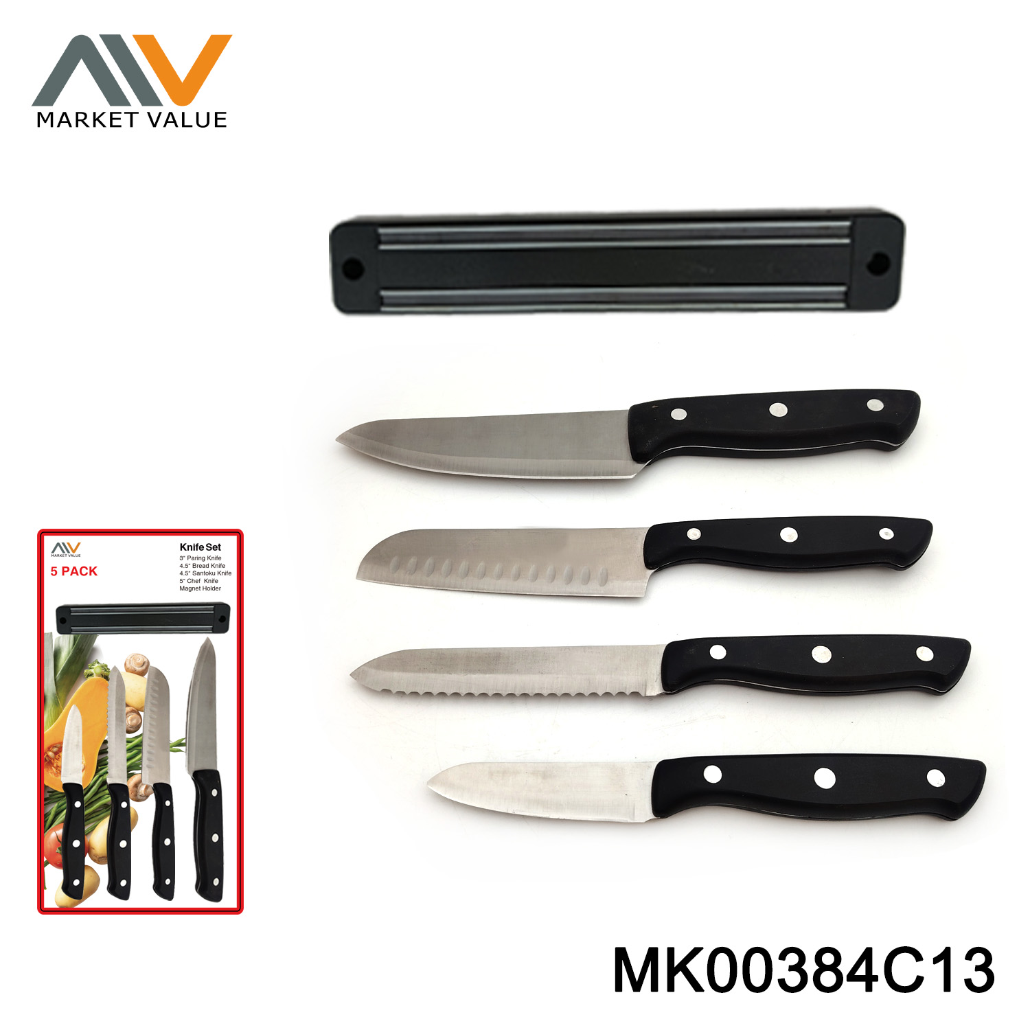 Upgrade your kitchen with the MK00384C13 5-Piece Full Tang Knife Set—designed for durability, precision, and everyday convenience.
