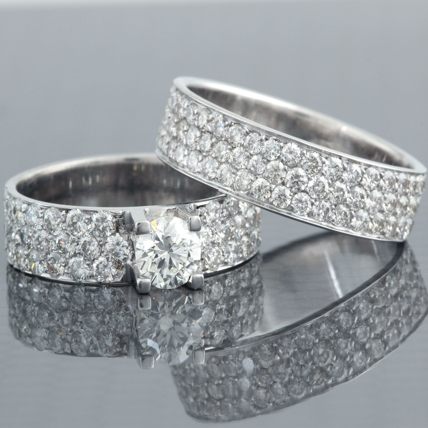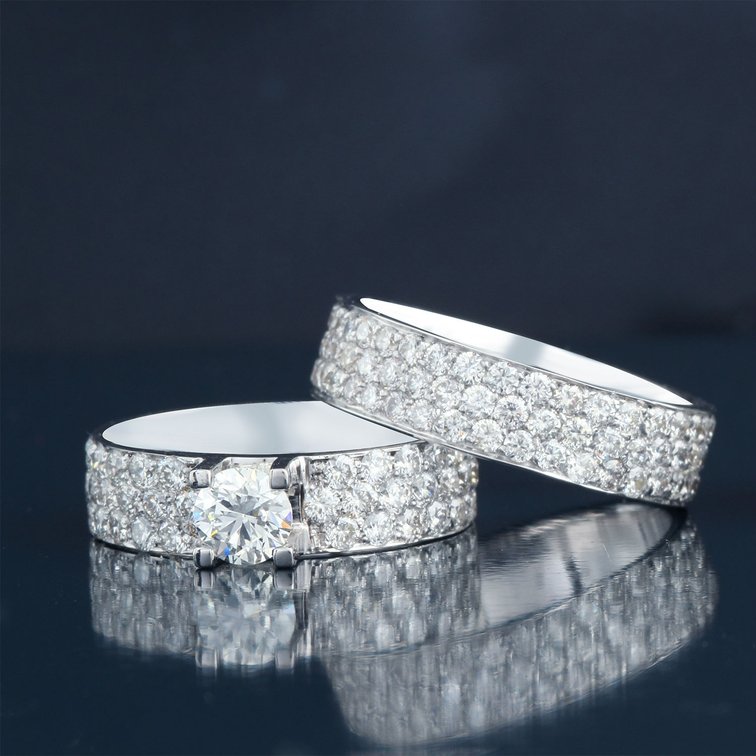 This ring 14K White gold set is comprised of 2.92Ct and 0.50Ct Center stone round white diamonds.