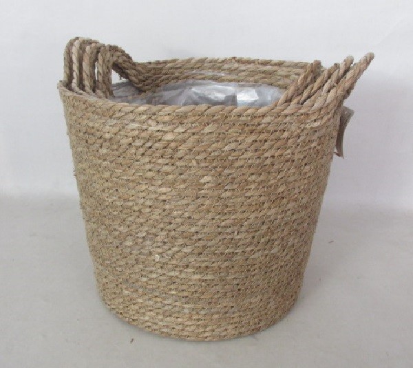 Set of 4 rush baskets, can be used for flower port, which are natural.