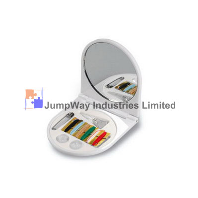 • Sewing kit with make-up mirror in compact case.