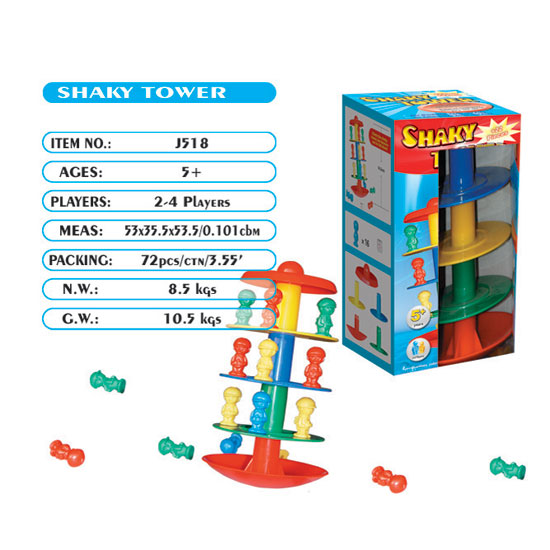 Shown here is a shaky tower game that requires players mental and physical skills. This simple game delights children and adults. This entertaining game is suitable for use in parties.