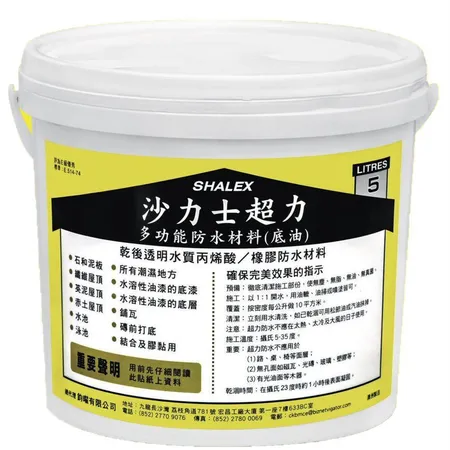 SHALEX SEALIT Multipurpose which is a base paint that used as prima or along to give a good resolution of waterproofing. It can also used before other water based product. It will penetrate into the pores of the concrete to form a stopper so that to stop water get through. It is made of Acrylic and is an ECO product. It has passed the BS6920-2014 test and the ASTM514/E514 test of prevent water penetration and leakages test with excellent result.