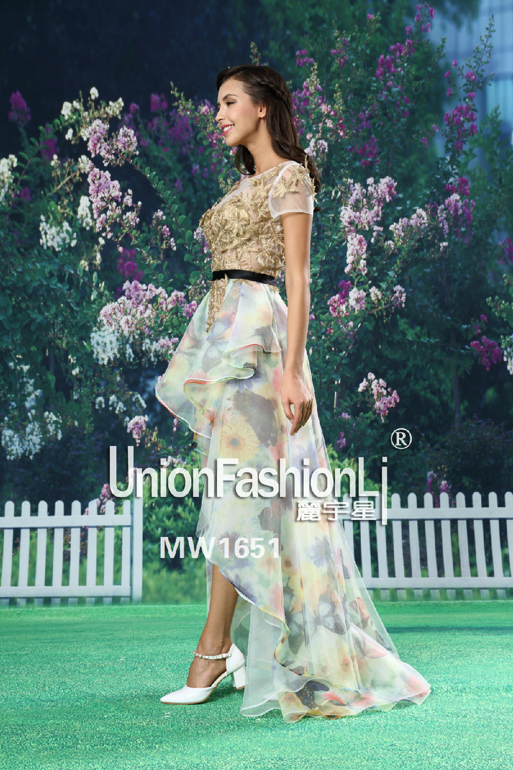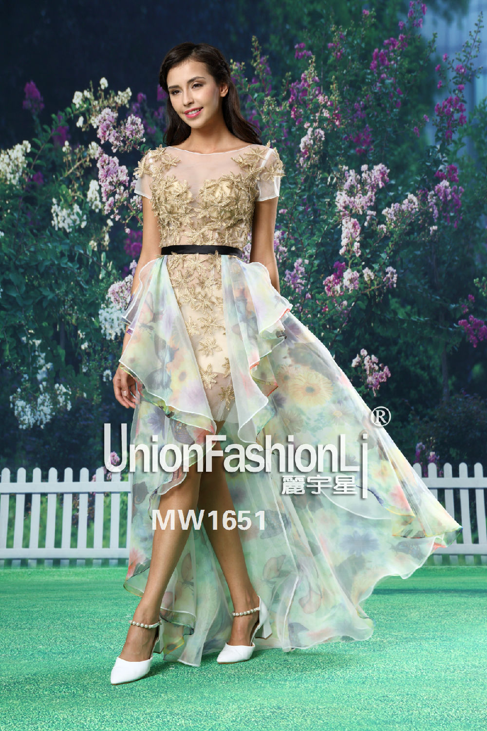 The dress is sexy with see through tulle,golden appliqued all show the Gorgeous temperament,butterfly and flower float on the dress tail,chase for youth for girls.