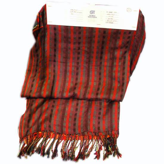 The featured shawl comes with fringes and solid and dotted lines. It is red in color and can make you look sharp even when you are wearing dark and plain outfits. The shawl is soft and comfortable to wear.