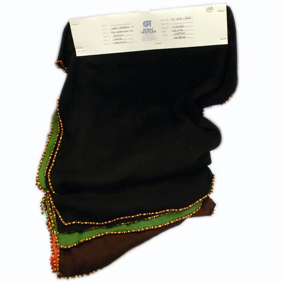 Though the featured scarf is black is color, the tiny beads woven on its edges make it a lovely neckpiece. The small beads are of different colors and they create a unique style. The shawl is perfect for matching with light-colored clothes.