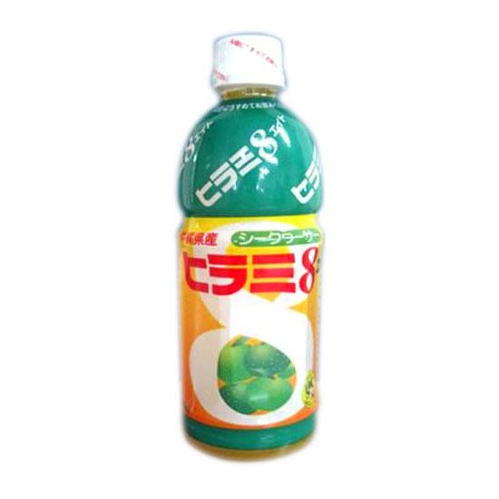 Highlighted here is bottle of juice that is made of a natural sour citrus fruit called shekwasha. Shekwasha contains a large amount of healthy nobiletin and tangeretin, which has been popular throughout Japan for its effects in reducing blood pressure and blood sugar, and its anti-inflammatory properties were discovered. Furthermore, it contains Vitamin C, Vitamin B1, carotene, and calcium.