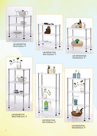 Featured here is a 3-4-tier shelf designed with castors. The net-like structure of the shelf allows contents to dry fast.