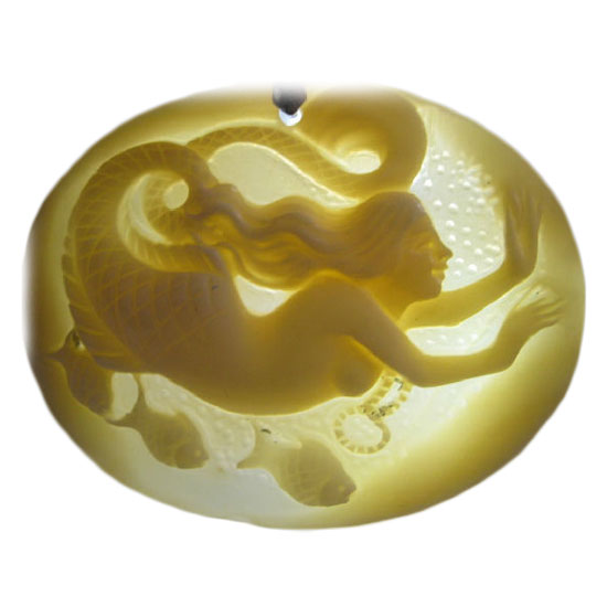 This shell cameo pendant comes with a carved image of a mermaid. The pendant is hand carved by senior sculptors with exquisite workmanship. The pendant brings out your unique personality without sacrificing your beauty.