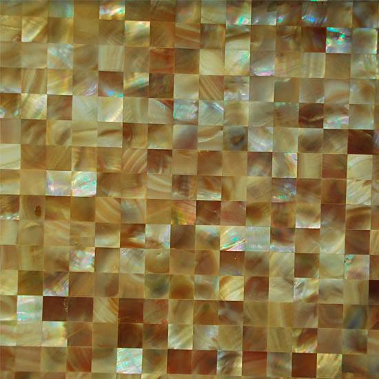 The mosaic tile is made of quality shells. The shells are cut into delicate square shape and polished. The tile is brown in color, giving out a gentle glow. The tile will lift the taste of the interior design.