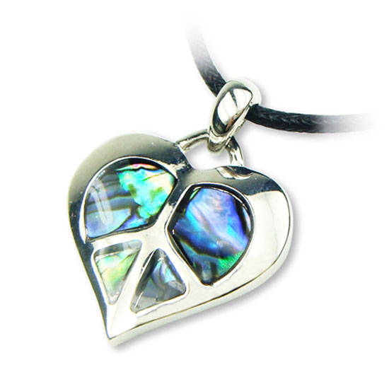 The pendant here is designed in an exquisite heart shape to appeal to ladies. The center features cut-out patterns embedding natural paua shells. The shells come with shiny facets to exude colorful glow.