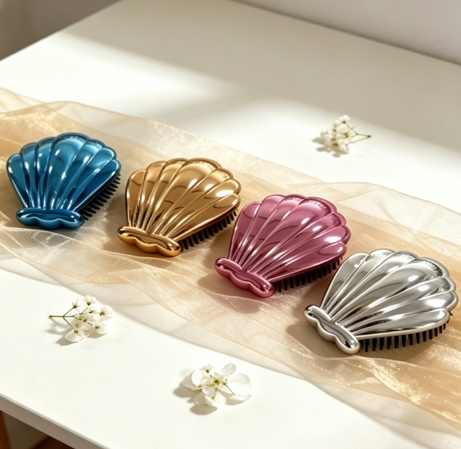 Plastic chrome-plated shell shape detangler