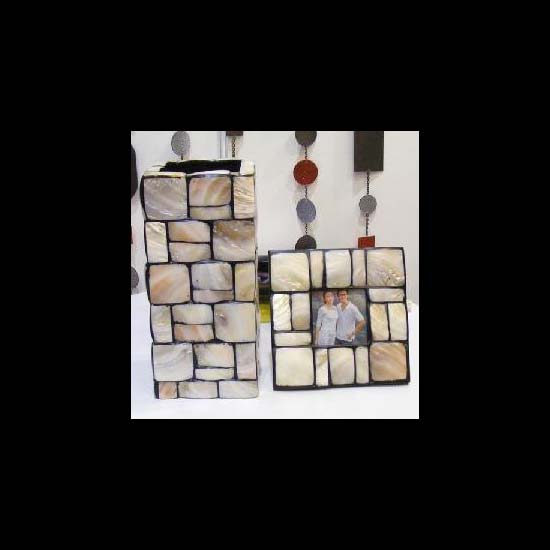 • The set consists of a vase and a photo frame made of beautiful ivory shell collage