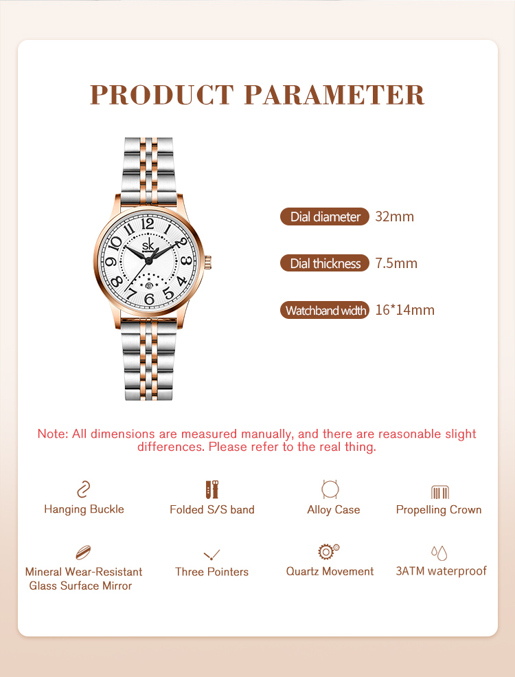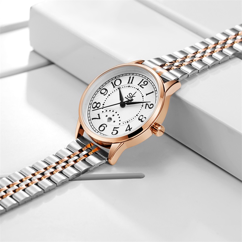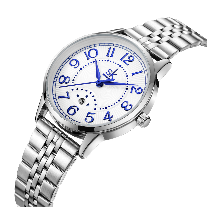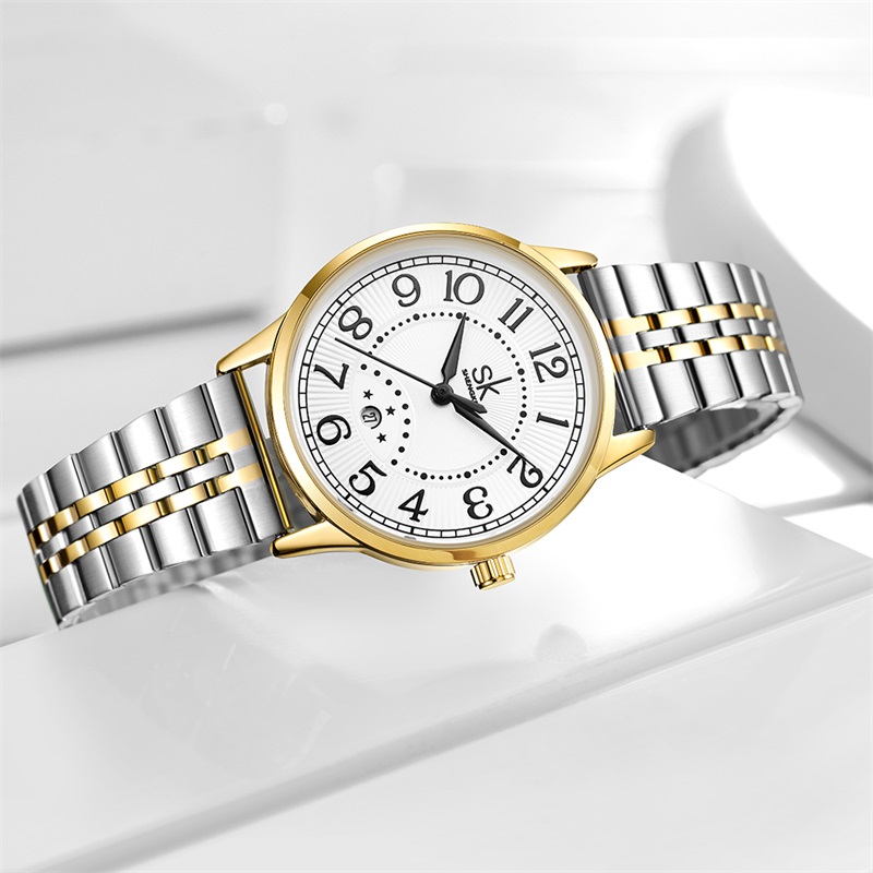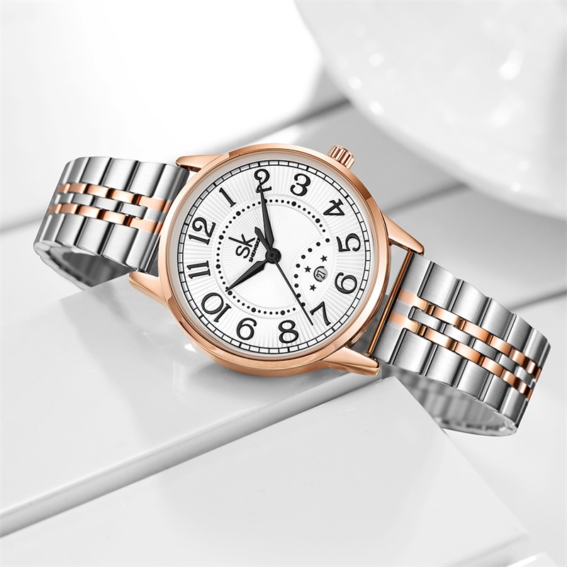 Shengke Hot Selling Luxury Watch Stainless Steel Band Reloj Mujer Calendar Women Waterproof Watches
