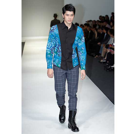 The highlighted men’s wear features a long shirt with a pair of checkered pants. The outlined shirt is accented with contrastive color combinations, showcasing a stylish look. The featured wear set is ideal for men who love looking fashionable.
