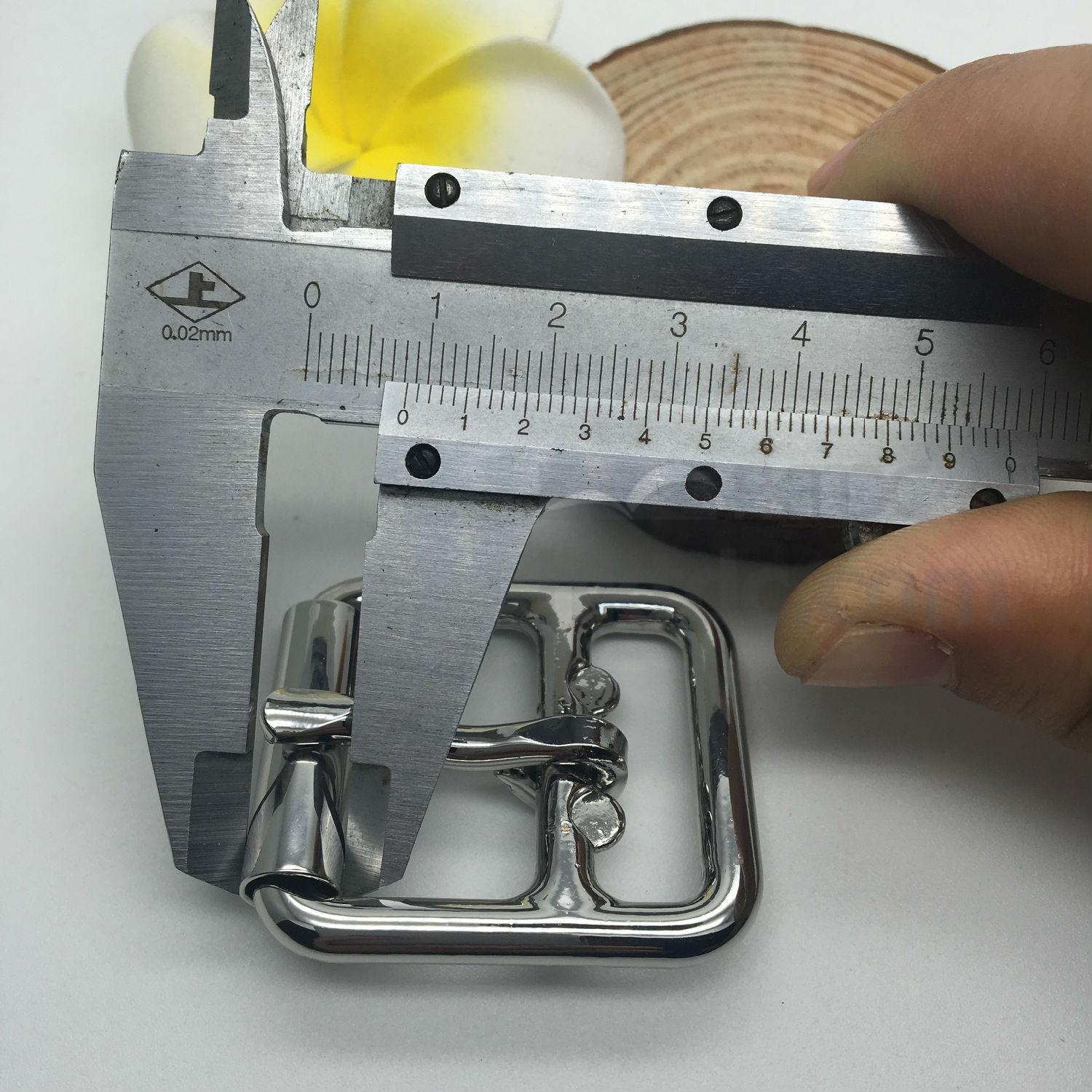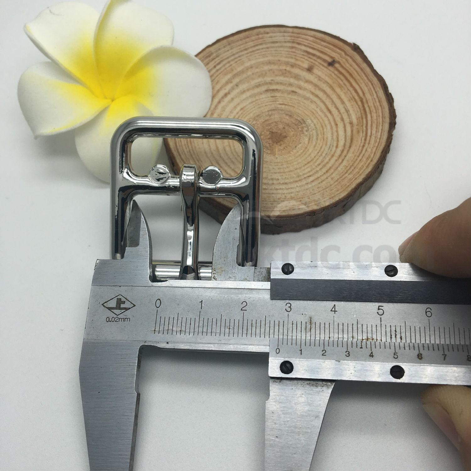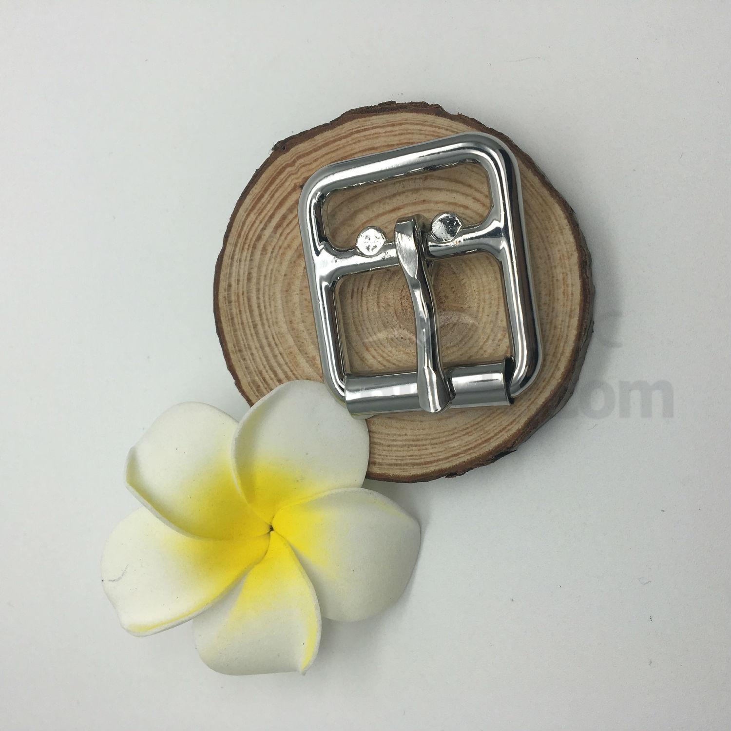 Displayed here is a buckle for fastening shoes. It comes in a rectangular shape and has a shiny metallic exterior. This shoe buckle offers a long lasting durability and looks great on any shoes.