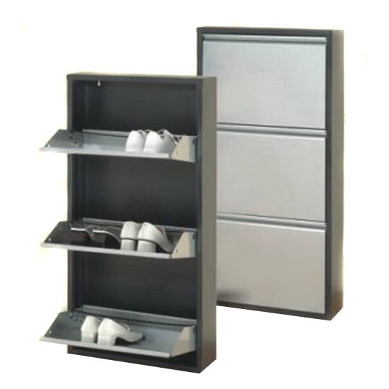 This shoe cabinet organizes your shoes in an orderly manner. It has two styles, drawer or rack. The drawer cabinet is equipped with doors that protect your shoes, while the rack style allows you to easily access to the shoes. Each one has three layers, each of which is wide enough for about three pairs of shoes.