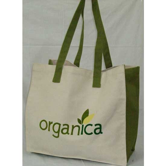 Featured here is a shopping bag made of 100% organic canvas. The shopping bag is biodegradable and environmentally friendly. Customized logos can be printed on the bag for enhanced advertising effects.