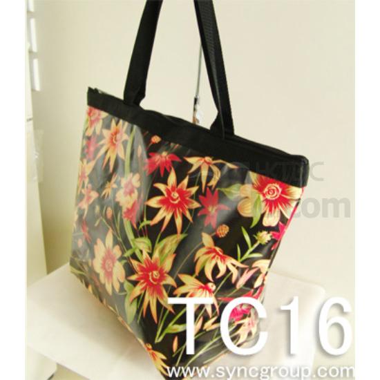 Shopping Shopper Tote Bag, Cotton Canvas with Lamination, Zipper Closure