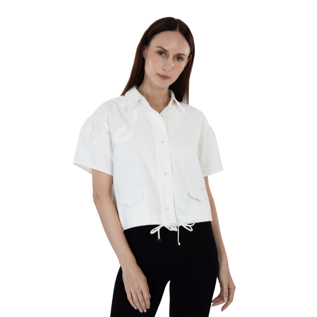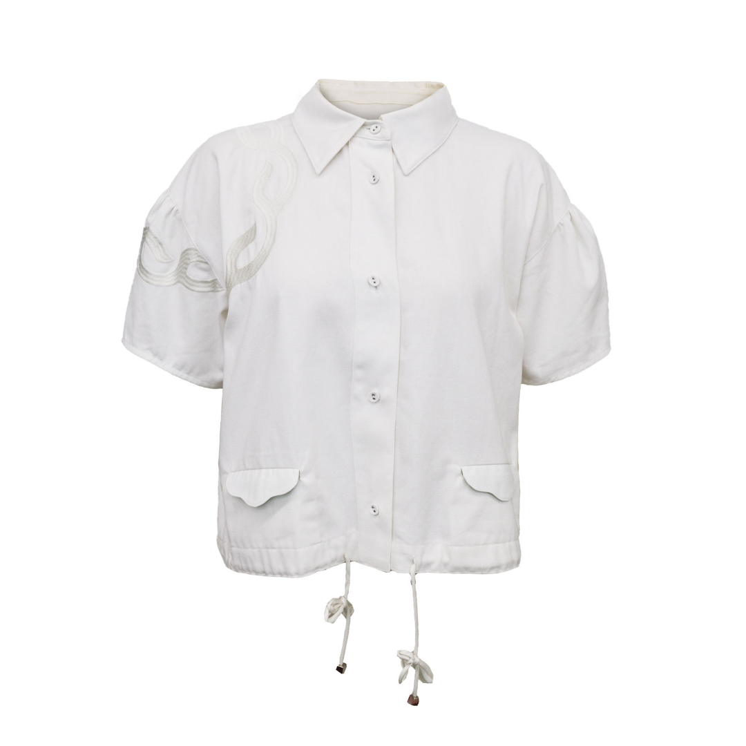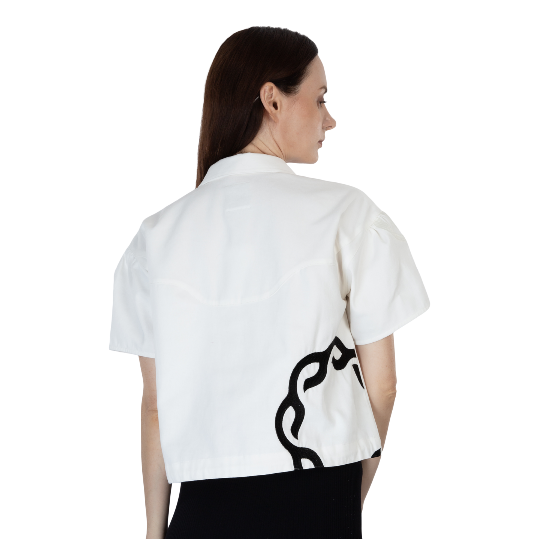 This refined jacket showcases exquisite embroidery detail at the front, artfully paired with the back in classic black. Made from 100% Organic Cotton construction for a sustainable yet luxurious feel, it represents our commitment to conscious craftsmanship.