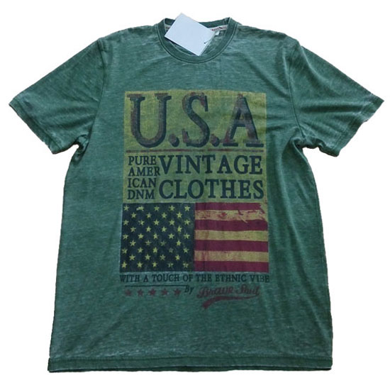 This is a T-shirt with a fashionable and trendy design. It comes in dark green with colorful prints on the front for added style. This T-shirt is easy to mix and match with assorted outerwear and trousers.