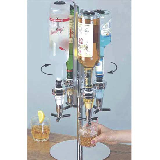Showcased here is a drink dispenser especially for wine lovers. It comes with a burnished stainless steel stand. The dispenser can hold four bottles at a time to make it perfect for bars or restaurants.