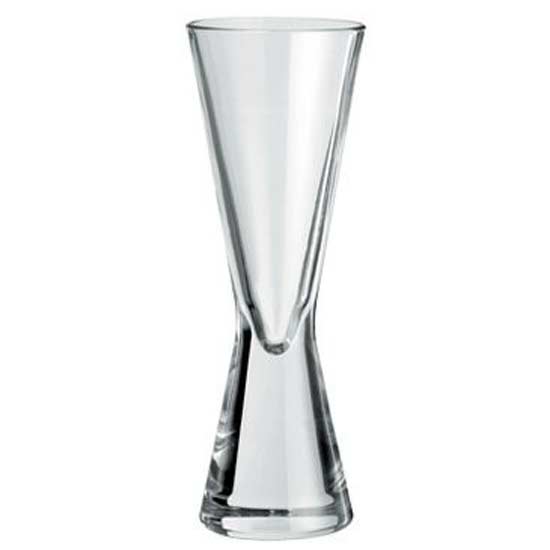 The sleek shot glass is designed to serve dessert or alcohol. It is made of high-quality glass for enhanced durability. This shot glass makes a great drinkware item.