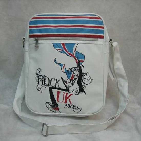 The stylish shoulder bag features zip-top closure and "rock" graphic print design. A single, flat top and adjustable handle complete this lovely shoulder bag. This shoulder bag is surely a great addition for your wardrobe.
