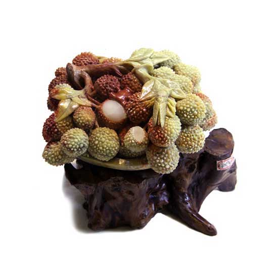 This delicate Shoushan stone decoration features a lychee-like design. It is crafted with jade, showcasing a refined accent. This displayed jade decoration complements your place in a tasteful way.