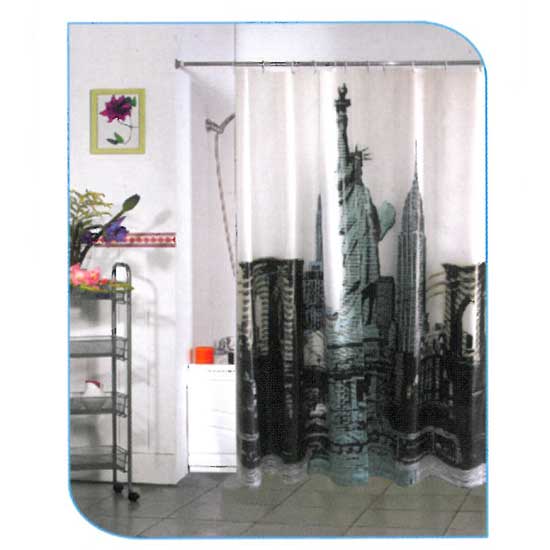 Showcased here is a series of shower curtains with stylish designs. The semi-transparent curtains feature colored prints, like the landmarks of the New York city. The unique designs make the curtains perfect for modern bathroom settings.