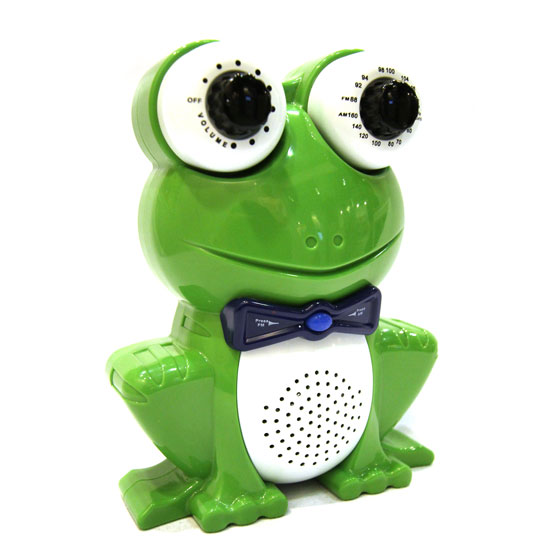 Presented is a lovely shower radio designed in the look of little Mr. Frog. Mr. Frog’s eyes allow you to switch the radio channel and tune the volume up or down. Its tummy delivers your favorite radio show to you in the shower.