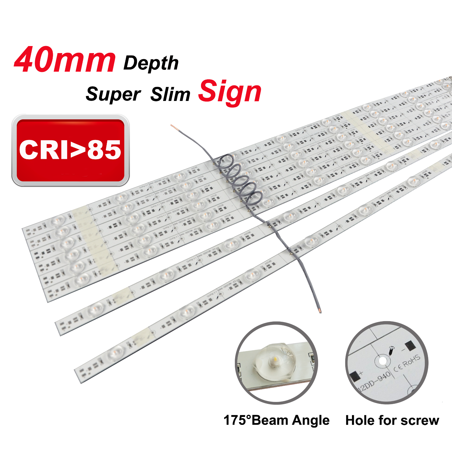 As the newest backlighting system, lens LED rigid bar helps to light up very slim signs without any dark area. The distance between light and front cover should be at least 25mm. There is no limitation on the width and length of signs. The heat sink itself is very good. LED curtain can be flexibly installed according to light box shape, it is widely used for signs in shopping malls, chain stores, wall decoration, etc.