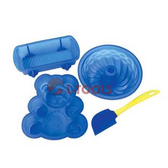 This baking kit includes a loaf pan, a cake pan, a bear-shaped jelly mould and a spatula. Each item boasts a silicone construction to withstand high temperatures. This baking kit is the perfect gift for your favorite little baker.