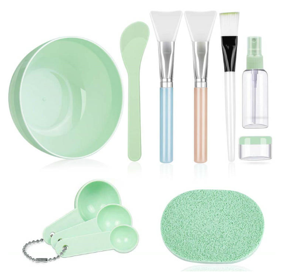 【MEET EVERYDAY DIY NEEDS】Our face mask tool set come with 1 face mask mixing bowl, 1 stick spatula, 2 silicon face mask brushes, 1 soft brush, 1 wet puff, 3 measuring spoon, 1 spray bottle and a small soaking bottle, 11 in 1 set, having everything you need