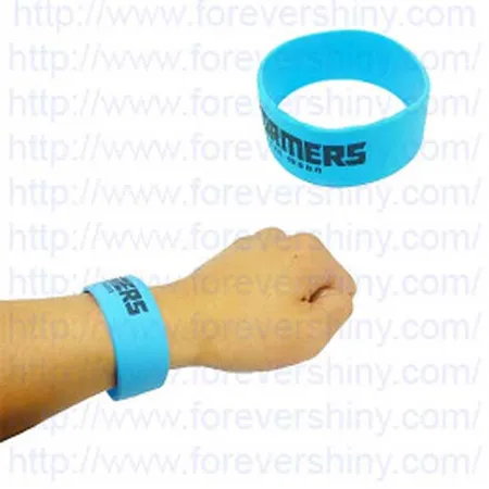 This is a silicone bracelet in bright blue with black works on it. It is designed in a neat shape with excellent workmanship. The quality silicone material promises durability.