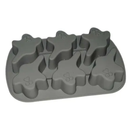 The silicone cake bakeware features six baking compartments in the shape of a ghost. It is made of non-toxic silicone with a non-sticking and easy-to-wash surface. The silicone cake bakeware can be used in ovens, microwave ovens, dishwashers and freezers.