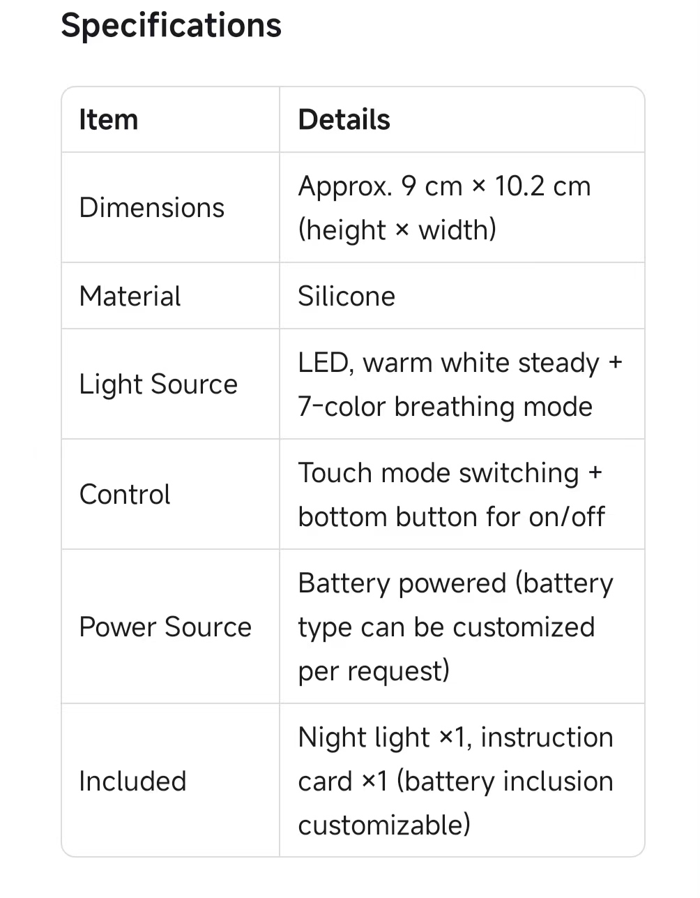 · Adorable Design: Cute cat shape, compact size (approx. 9 cm × 10.2 cm), functions as both a night light and a desktop decor piece