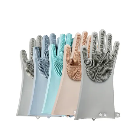 Silicone Dishwashing Cleaning Gloves, Reusable Unlined Kitchen Gloves, Household Wash Brush Mitts