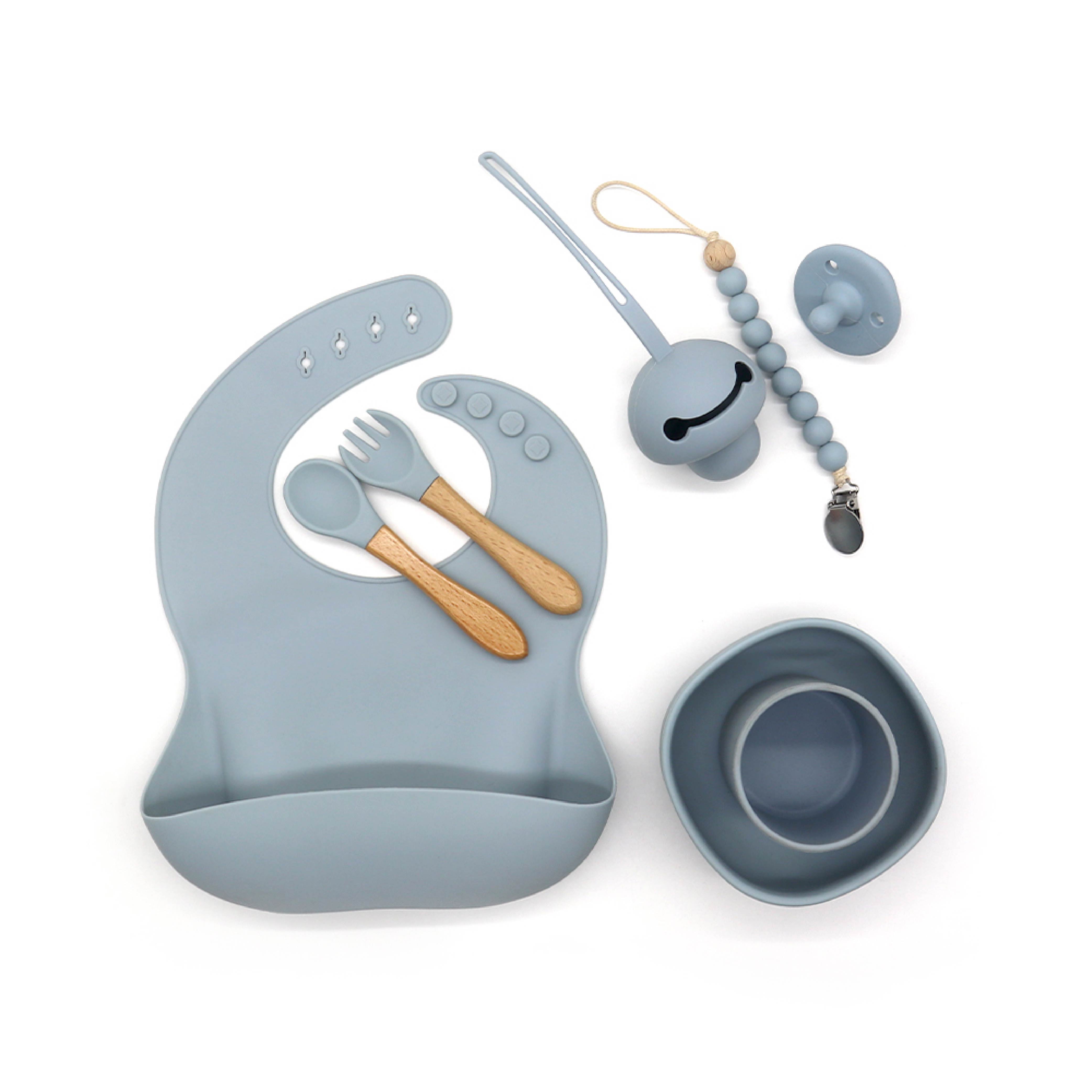 Item: FA18 Silicone Feeding Set Material: Food Grade Silicone & Wood Bib: 23x29cm Bowl: 12x6cm Fork Spoon: 14x3.5cm Water Cup: 4x7.5cm Nipple: 5.6x6.2x1.3cm Appease Chain: 24.5x1.5cm Muchroom Box: 22x6.6x7cm Set of 8 pcs Packing: Brown Box Total Weight of the Package: 570G Brown box size: 24x20x9.5cm H.S.Code: 39241000 |