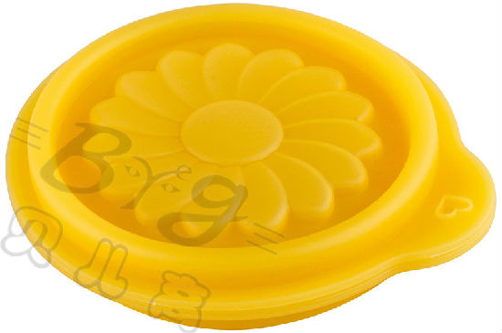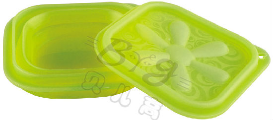 This foldable round bowl with a lid is made of 100% food grade silicone. It can be put in a microwave and oven for heating or a refrigerator to keep fresh. This silicone bowl is perfect for snack and food storage.