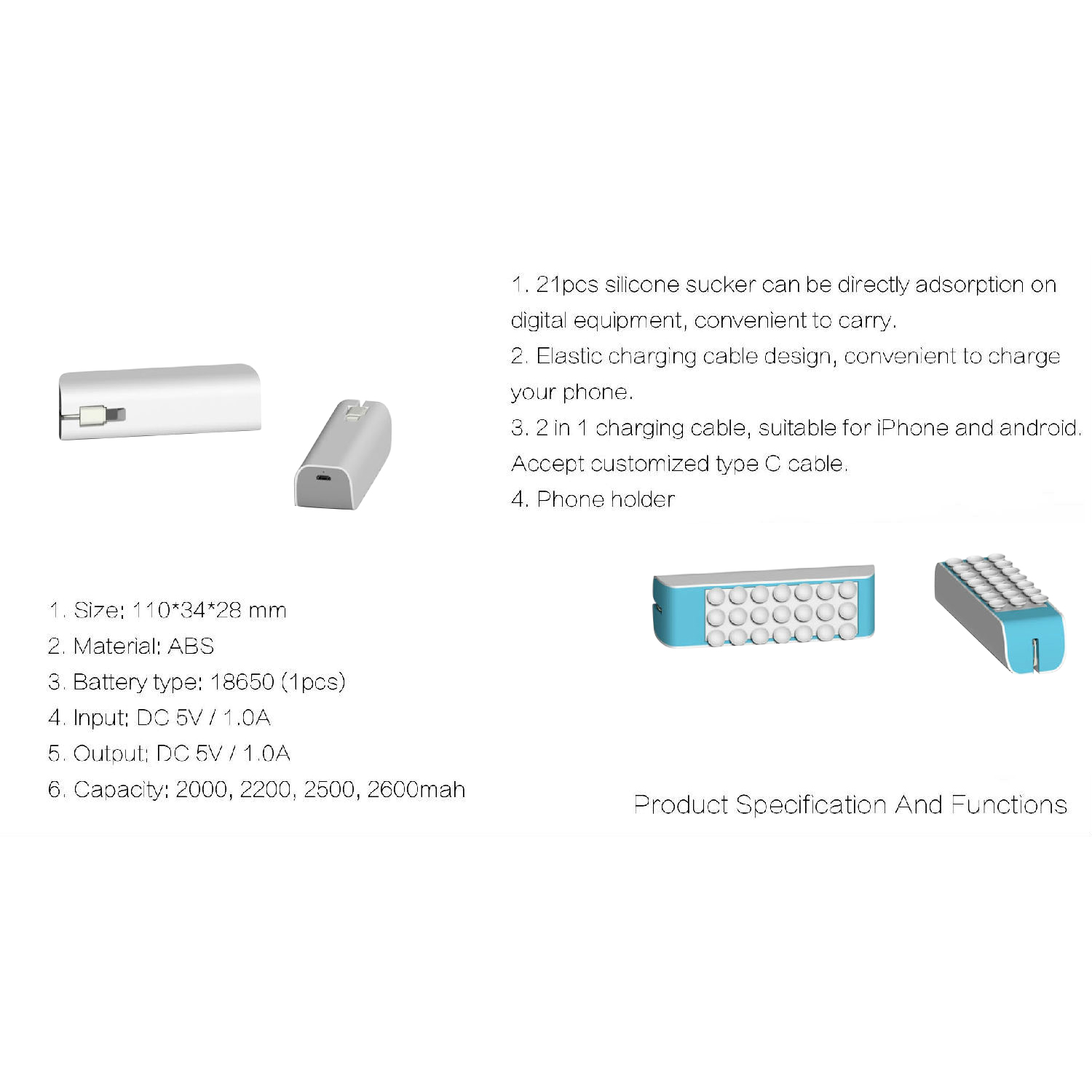 Silicone Power Bank with 2 in 1 Retractable Cable