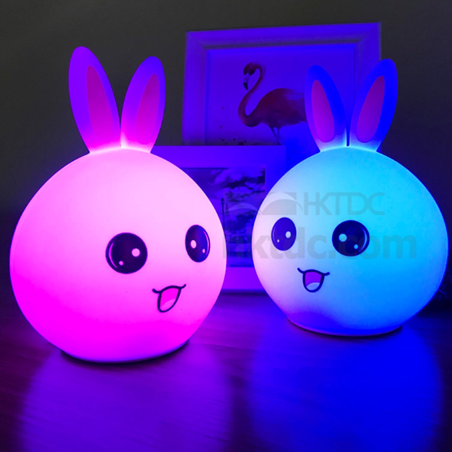 • Customized Silicone Rabbit Night Light Lamps Home Decor Touch Sensor Remote Control Nursery Light fo