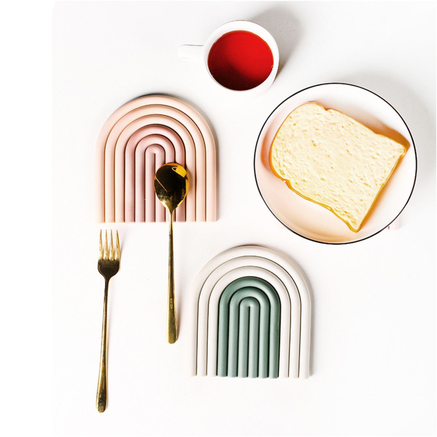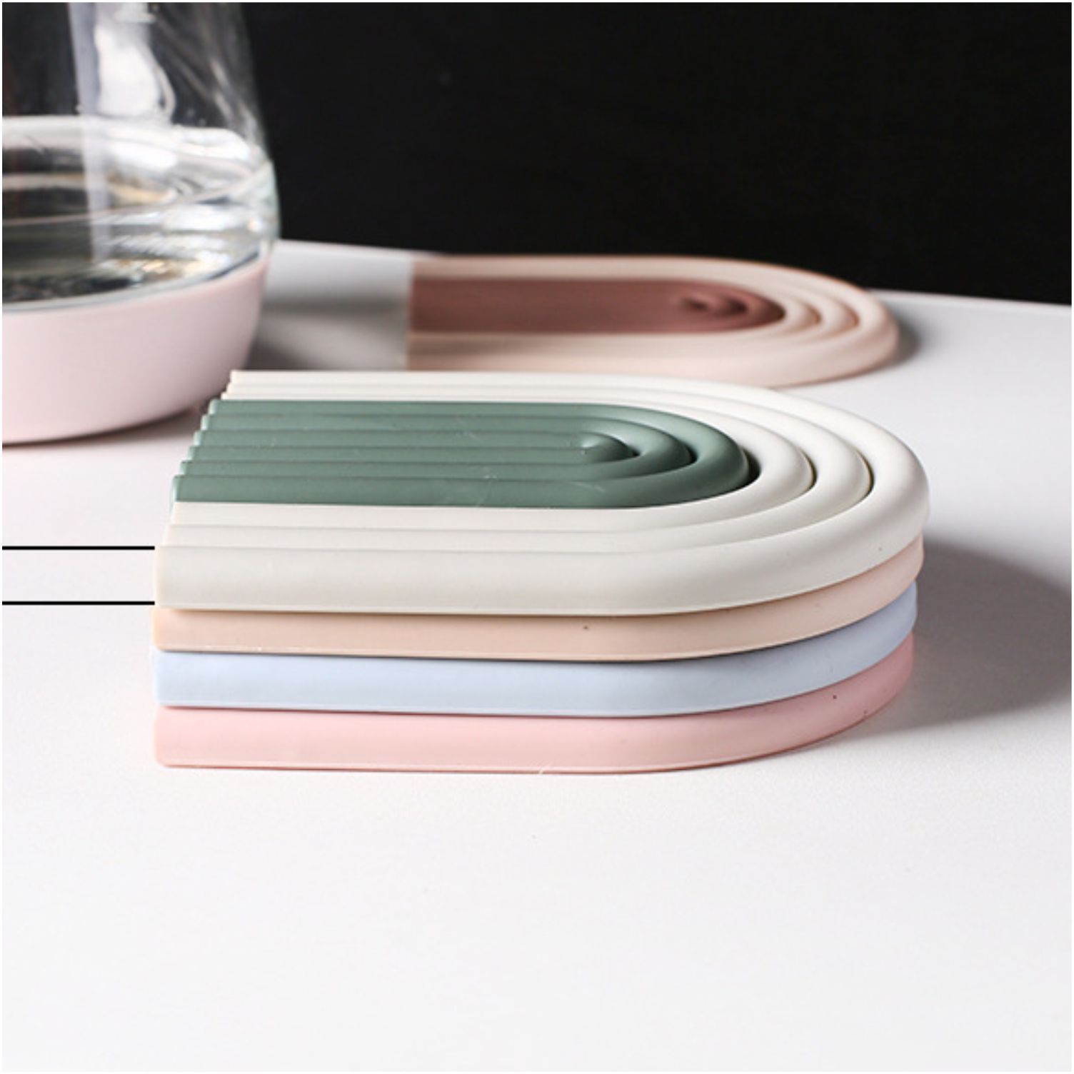 Pastel Rainbow Cup Placemat: Unique design make cup mats work as both a coaster and a décor, also fit for hot pot pad, drying pad, hot plate for tables and countertops, water cups, dinner bowls and dishes etc, home patio dinning room party coffee tea time décor