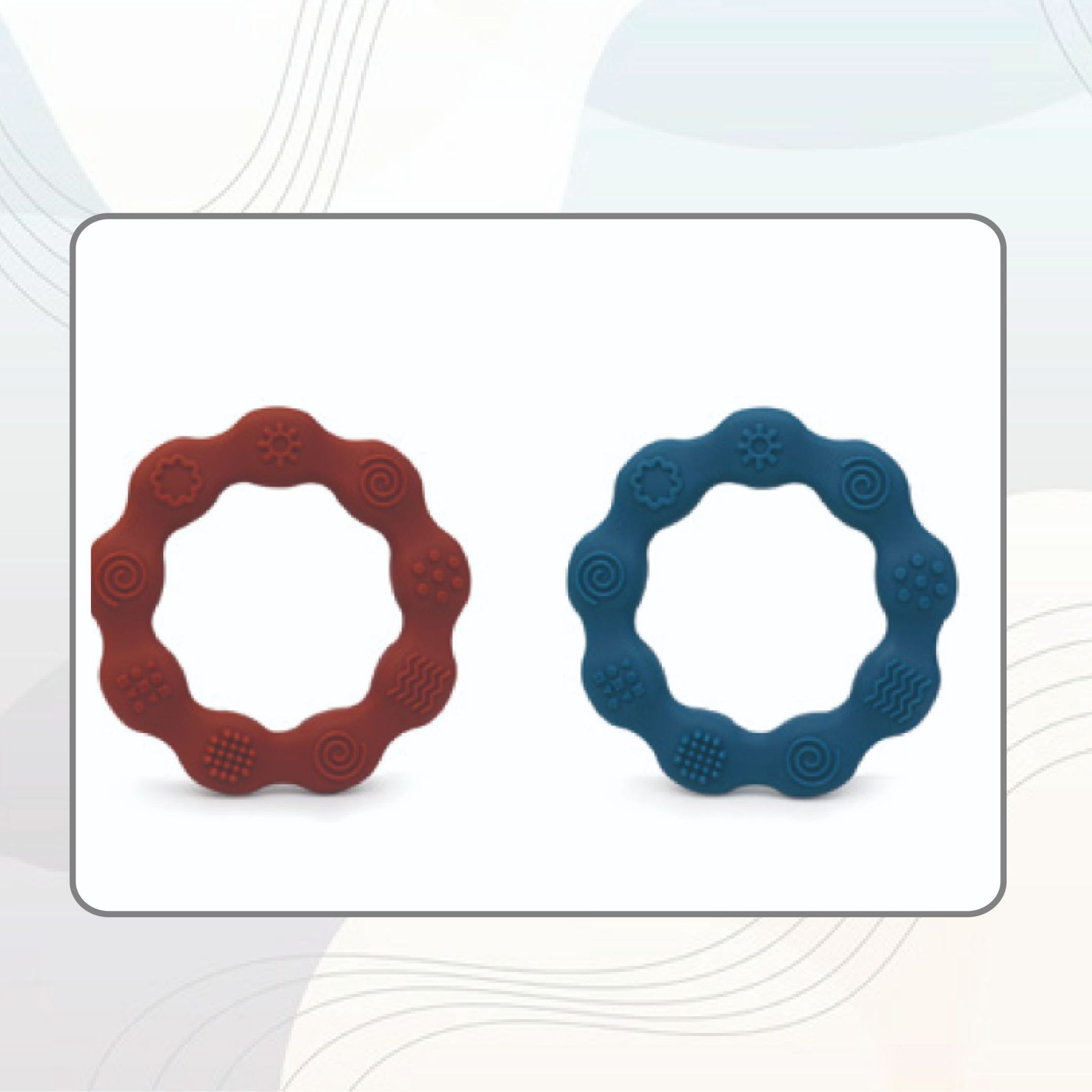 Ring teether can effectively stimulate the gum area on both sides of the baby's deciduous teeth and promote tooth growth. And effectively alleviate the problem of itchy gums during teething with different teething textures.