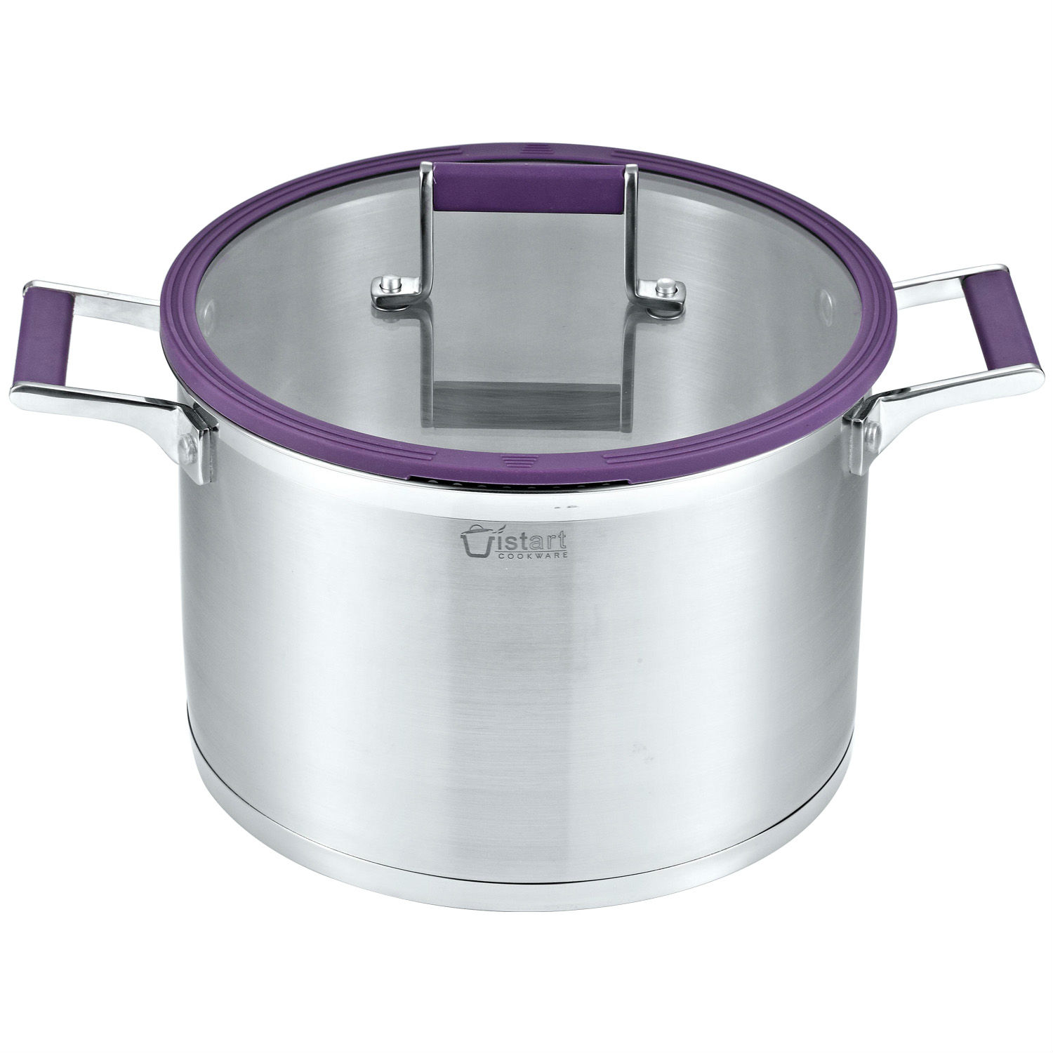 This is a stylish-looking soup pot that comes with a high-gloss finish. The brims of the cover and handles are made of top-quality silicone material in purple. Users will find the pot lovable with the easy-to-clean non-stick interior.