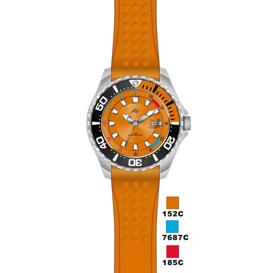 Featured is a fashion watch in orange. The watchstrap is made with lightweight silicone, which offers a comfortable fit on the wrist. The stainless steel case suggests high durability.